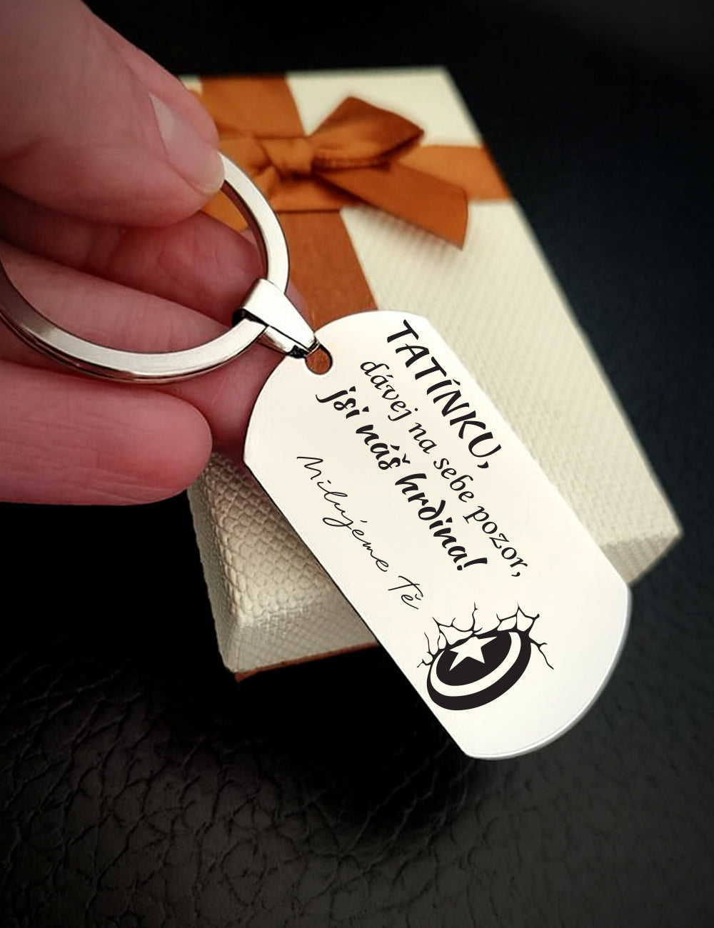 Elegantní nerezový přívěsek na klíče s možností osobního gravírování. Tento stylový doplněk je vyroben z chirurgické oceli a dodává se v luxusní dárkové krabičce. S rozměry 50 × 27 × 2 mm. Je ideálním společníkem pro každodenní použití nebo jako výjimečný dárek pro vaše blízké. Kromě standardního gravírování nabízíme také možnost vlastního loga. Osobitost v každém detailu. Buďte originální se stylovým přívěskem na klíče z naší nabídky.